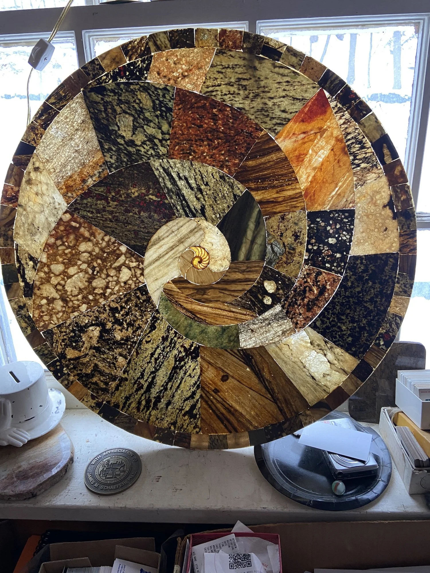 Vince demonstrated that, if you sliced an Adirondack rock thinner than a potato chip using a diamond-tipped saw blade, it became translucent. When backlit, it became as beautiful as stained glass.