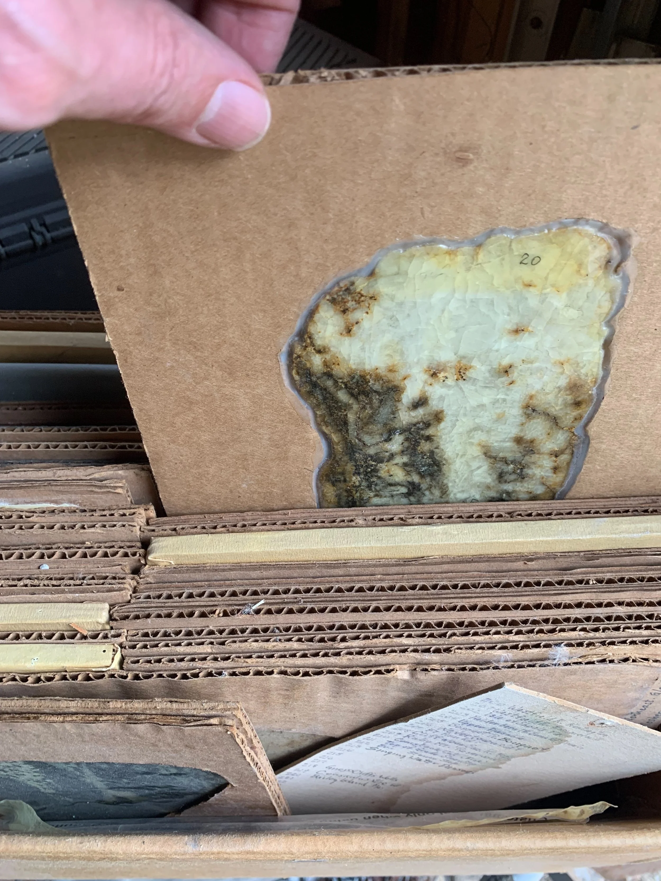 “He also was trying to find the geological sequences of the area from rocks he found in various locations. He labeled each stone with a yellow number, and indexed more than 200 by type and area.”